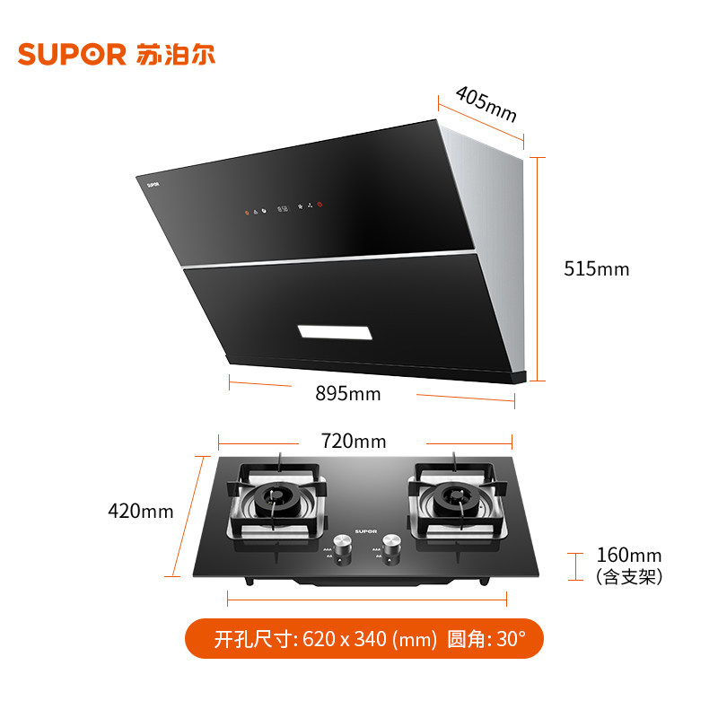 Supor MJ30 range hood gas stove package household combination water heater side suction smoke machine stove set