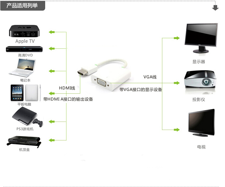 With audio interface HDMI to VGA notebook network set-top box connection monitor projector
