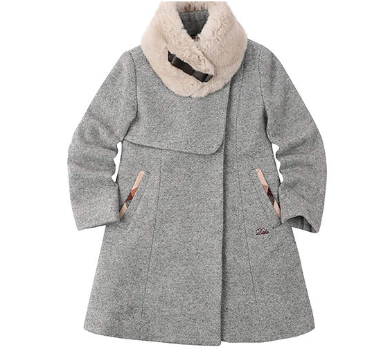 South Korea First-line Brands Winter Temperament Grey Wool Coat With Removable Woolen Collar Supplement to