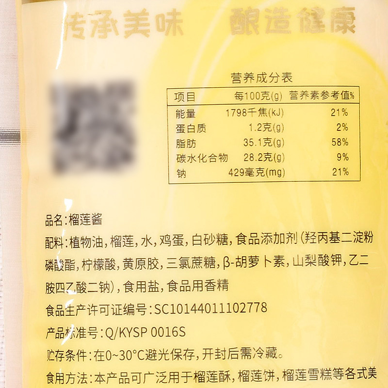 Myodo durian sauce 500g * 20 bags durian puree baking pizza sauce durian jam pulp filling raw material