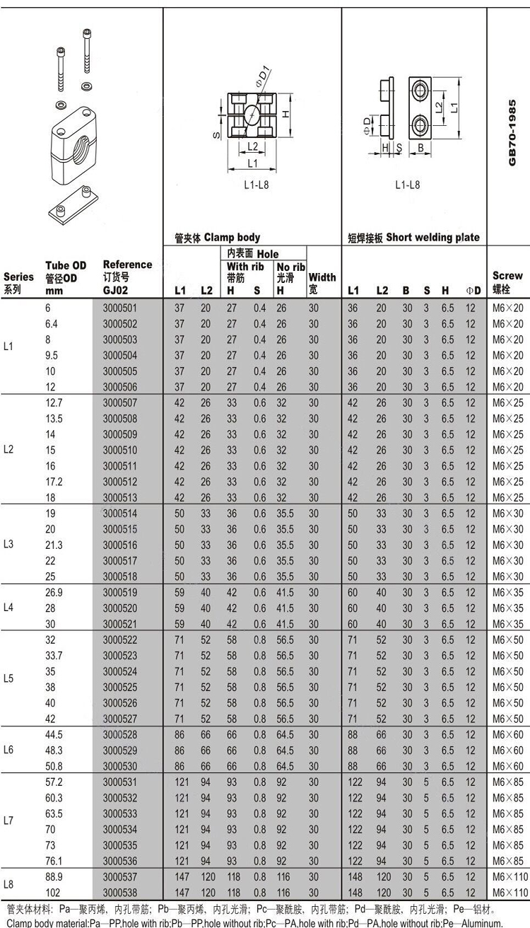 Light plastic pipe clamp TLPG2 series tubing clamp hydraulic pipe clamp A (II) type plastic pipe card