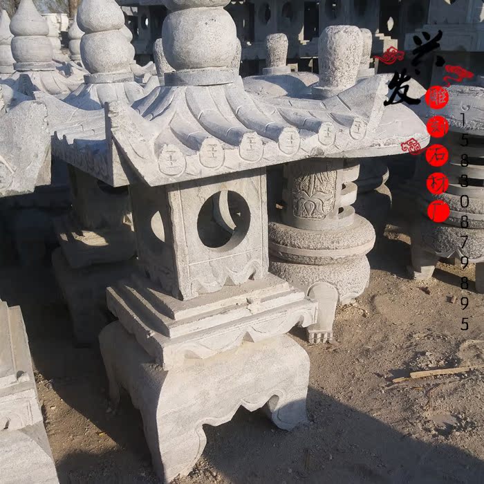 Stone Lantern Garden Japanese Stone Lawn Lamp Outdoor Sculpture FixturesDoor Pillar Lantern Solar Stone