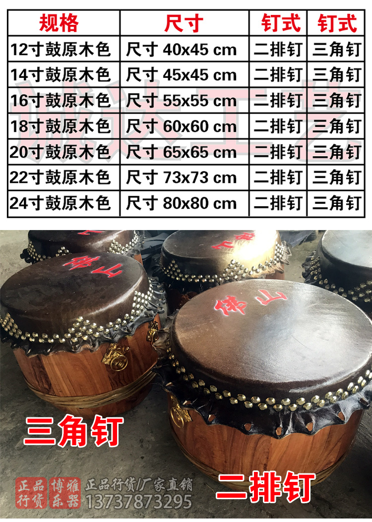 Foshan lion drum cowhide drum 12 14 16 18 20 log drum dragon boat drum wake lion drum gong drum