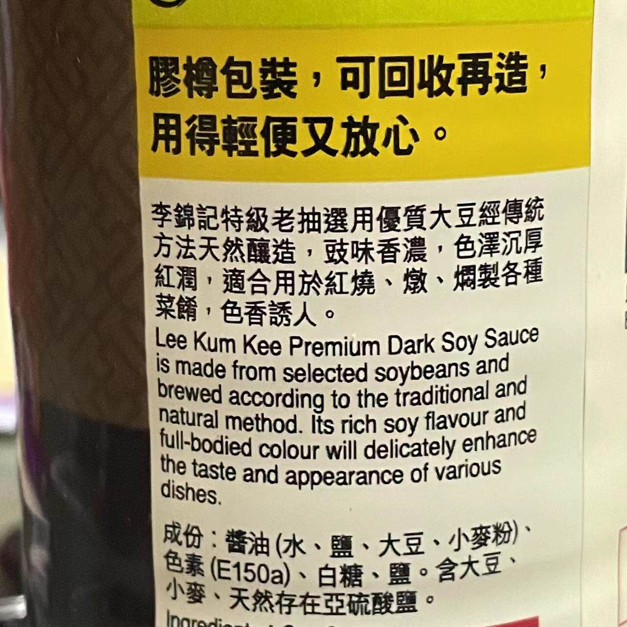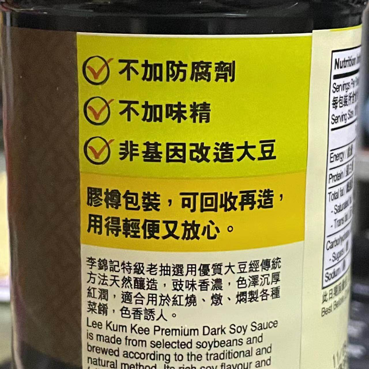 Hong Kong and Hong Kong version of Lee Kum Kee Premium Dark Soy Sauce 500ml without preservatives