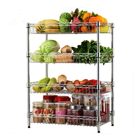 Movable kitchen shelf floor multi-layer household fruit and vegetable shelf storage basket 345 floor shelf pot rack