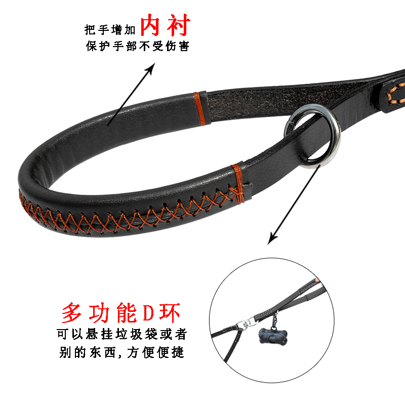 Cowhide double-headed traction rope one drag two walking dog traction rope large dog small dog dog chain teddy pet