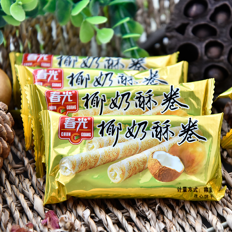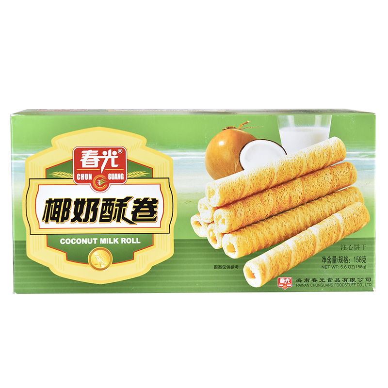 Spring Light Coconut Milk Crisp Rolls 158g * 4 boxes Hainan special Coconut Milk Sandwich biscuits Crisp Rolls Crispy Bulk Egg Rolls