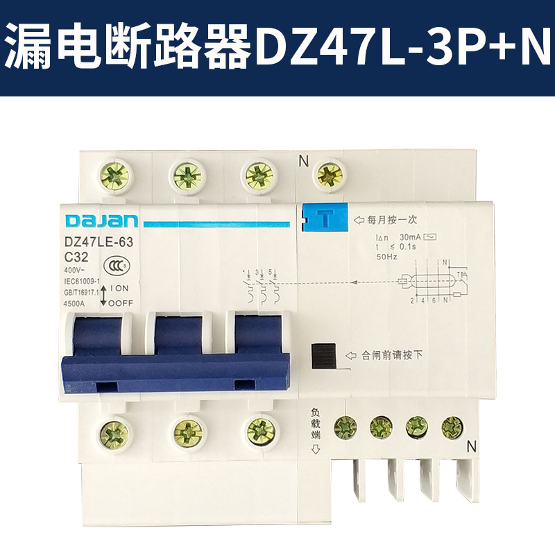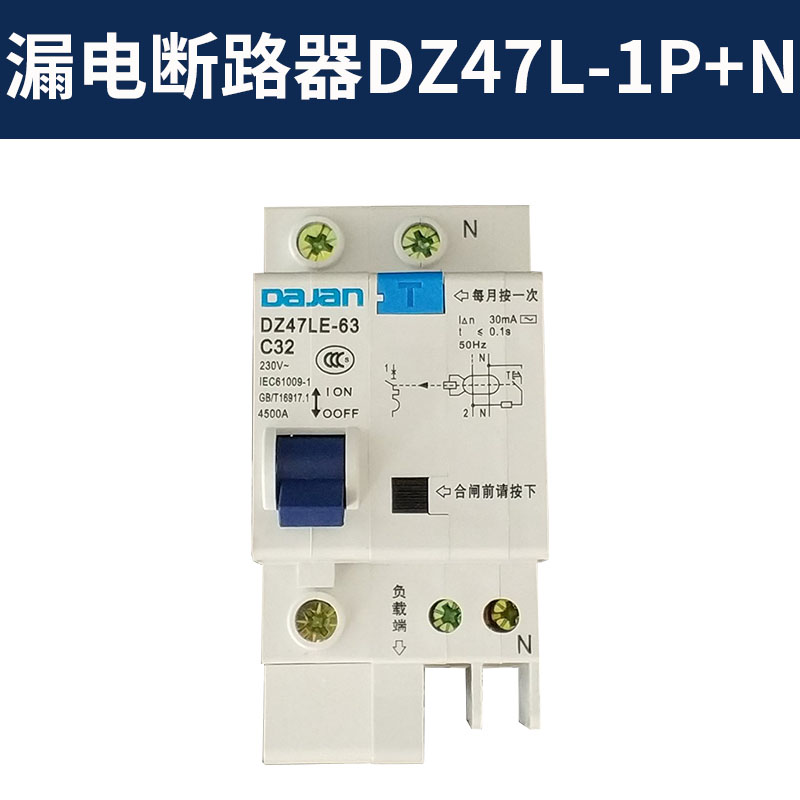 Large River Earth Leakage Switch 2P 63A DZ47LE Bipolar 32A Protector Home Empty Open Electric Shock Breaker Leak-Taobao