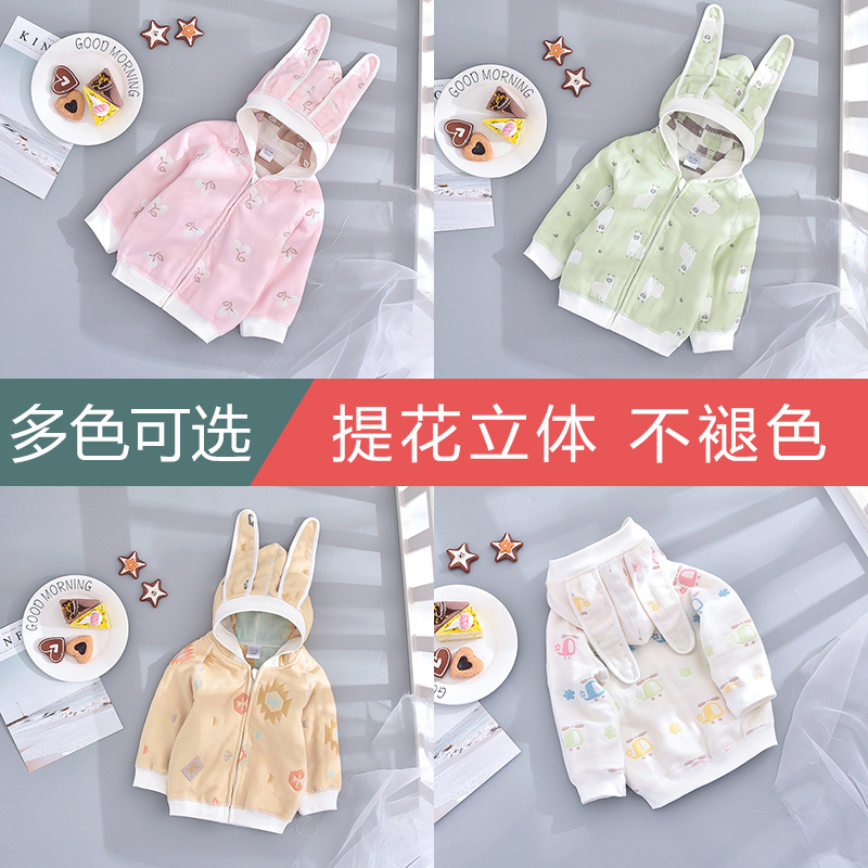 Baby coat spring and autumn pure cotton gauze clothing boy and girl baby 0 - 1 - 3 years old new hood out of the sweater