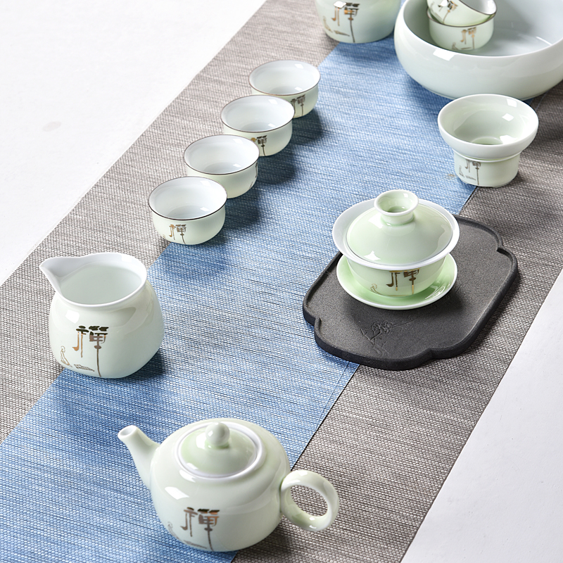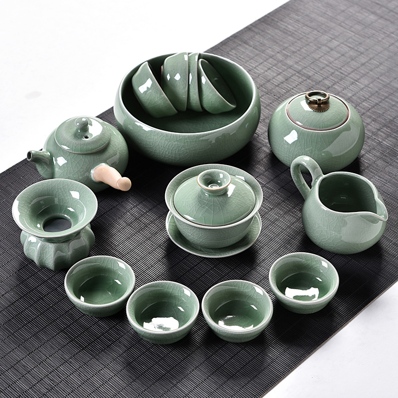 Light green green bean green Ge kiln side handle pot 10 pieces bean green Ge kiln cover bowl 10 bean green Ge kiln ancient pot 10 bean green Ge kiln ancient pot 13 bean green Ge kiln cover bowl 13 bean green brother