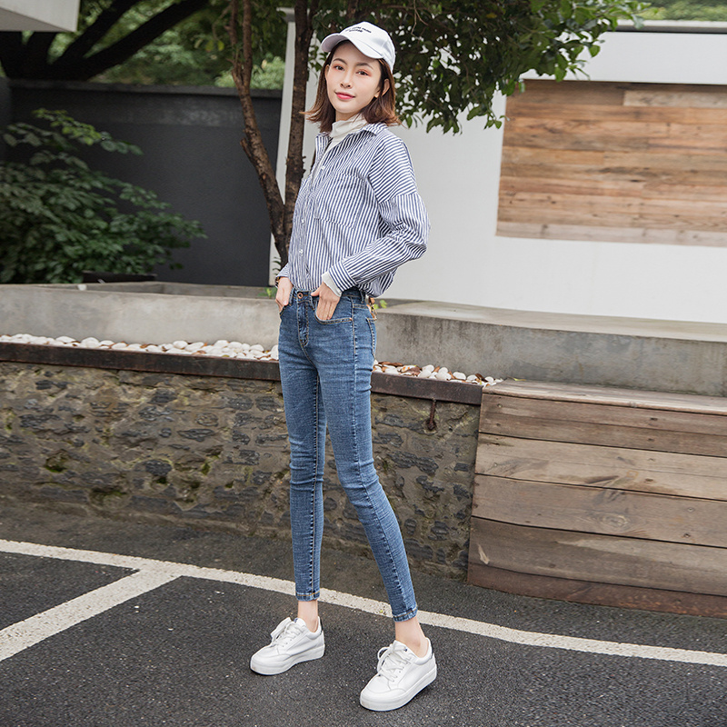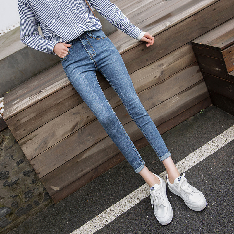 2020 spring and autumn Korean version eight-point raw edge chic jeans women's slim small feet show thin high waist nine-point pencil pants women