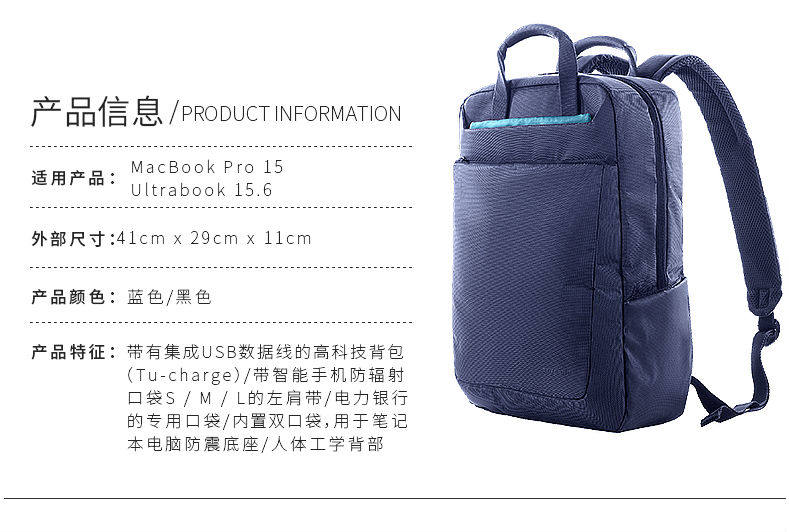 Tucano tocarano shoulder computer bag 15 6 inch notebook bag fashion business backpack men's simple model