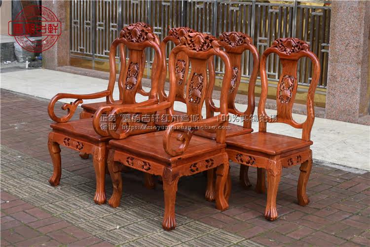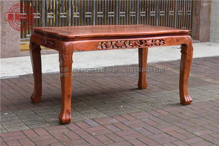 Burmese rosewood mahogany dining table solid wood dining table Chinese dining table with master chair thick single board living room furniture