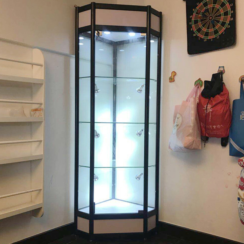 Corner display cabinet Glass gift jewelry hand-made model cosmetics red wine Lego triangle showcase display cabinet