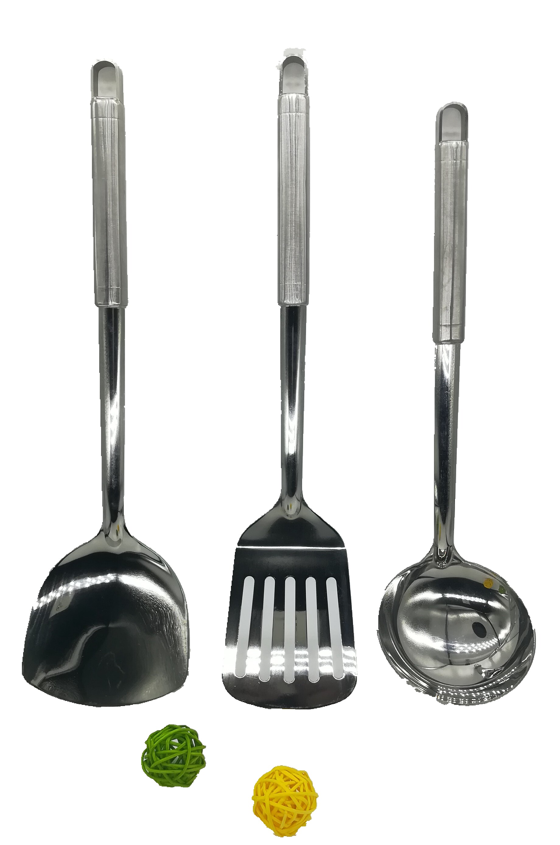 The kitchen commander thick stainless steel full spoon leaky shovel frying pan shovel 3 pieces of special promotional insulation handle hollow