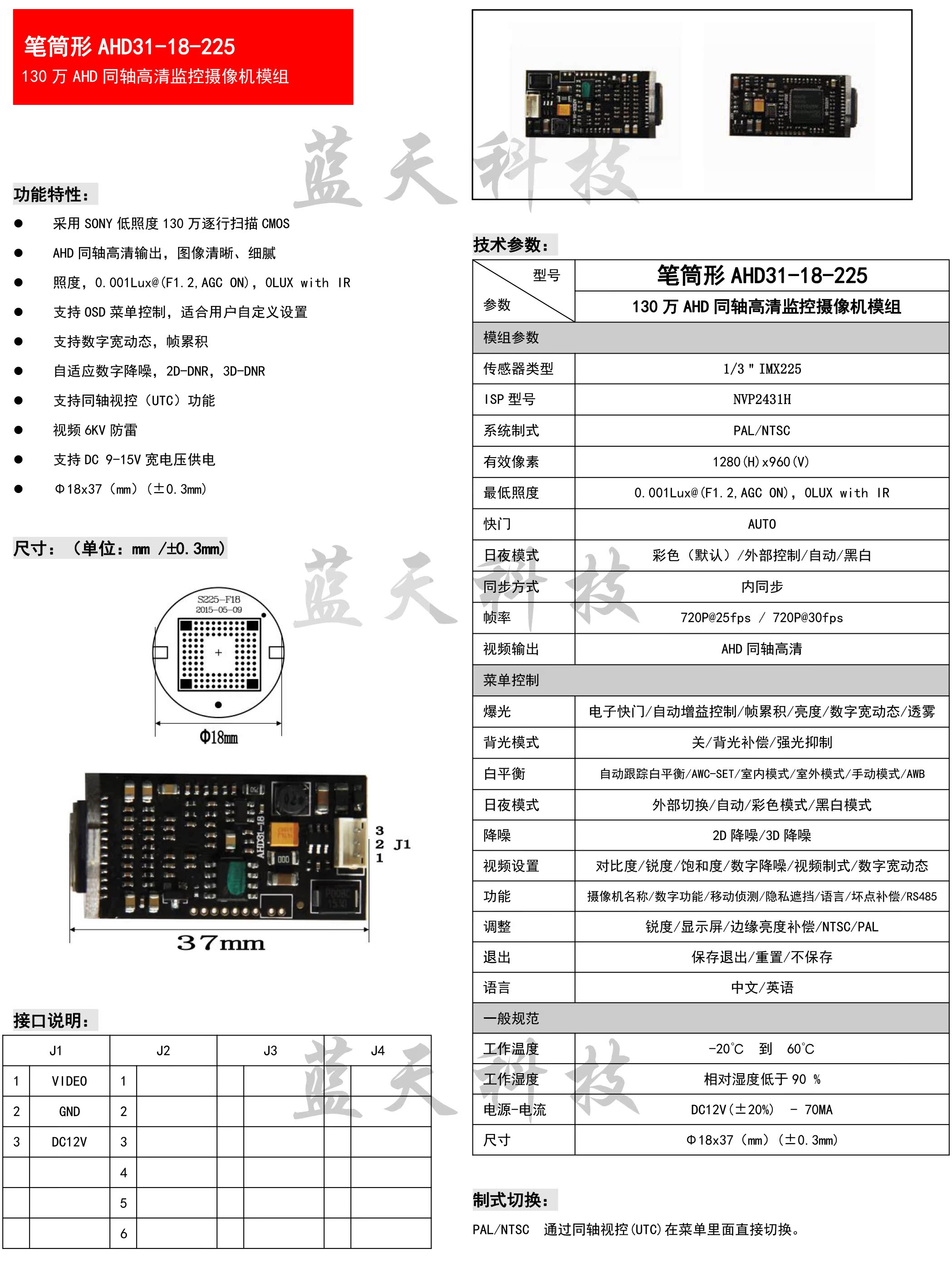 1.3 million HD bullet barrel camera chip motherboard AHD color starlight level SONY IMX225