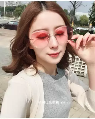 Atmospheric high forced grid borderless gradient gray sunglasses fashion men's and women's cutting pieces toad glasses translucent sunglasses
