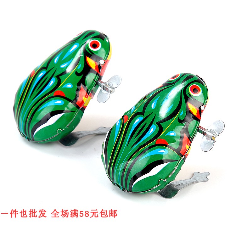 Children's Toy Ground Stall Source Upper Chain Clockwork Iron Sheet Frog 80 Classic nostalgic Previous Stiffness Clockwork Jumping Frog Baby