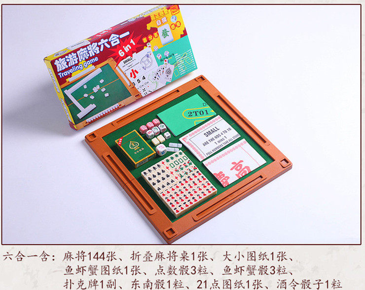 Extra size four-in-one mini mahjong with folding table carved mahjong travel portable fish shrimp crab dice