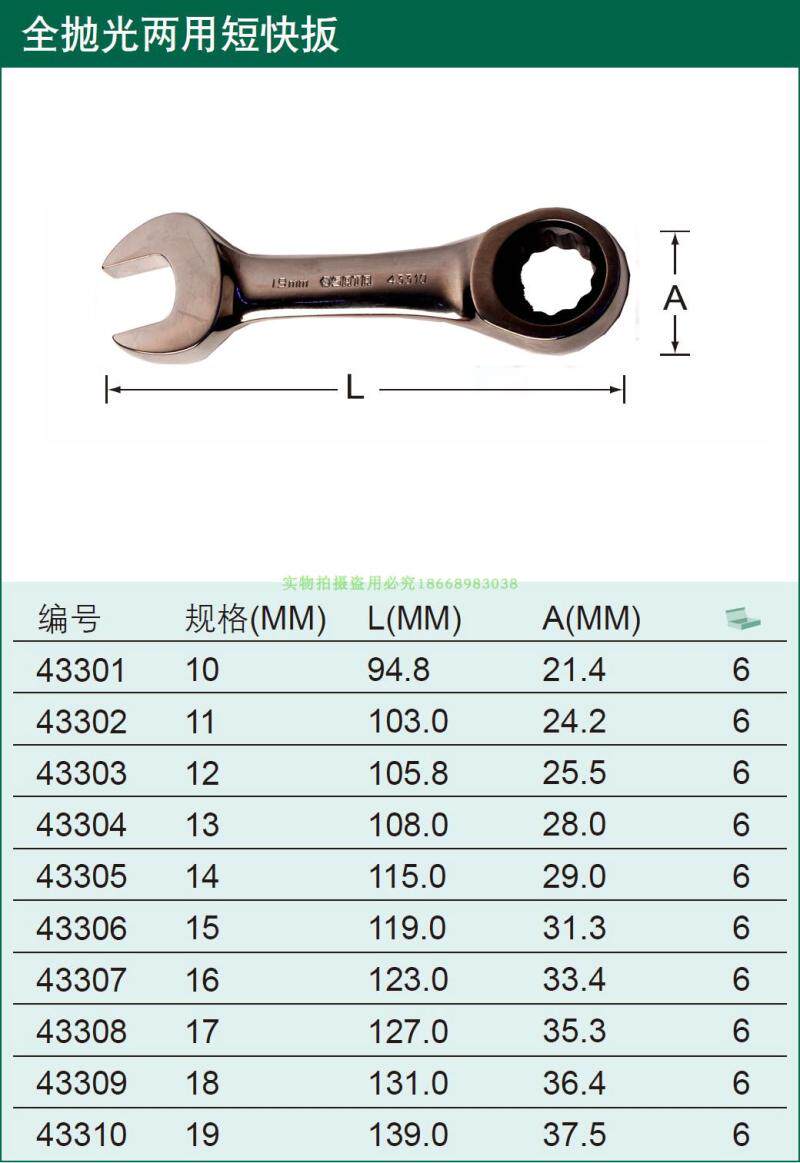 Shida polishing dual-use short fast wrench 43301 opening plum blossom ratchet wrench 43303 tool 43304 43305