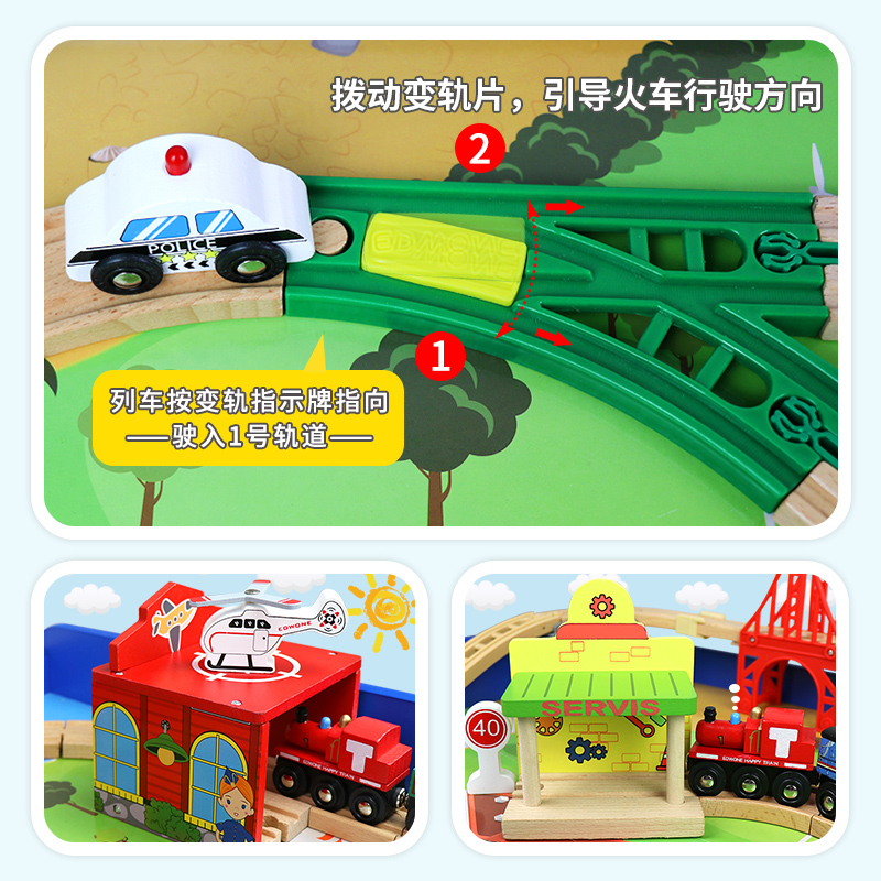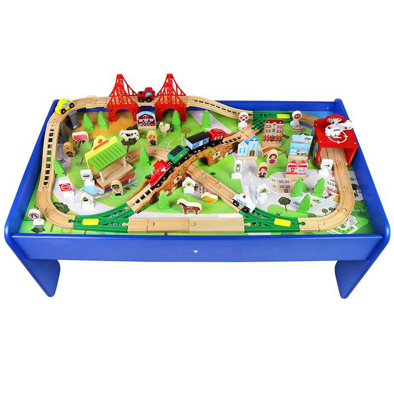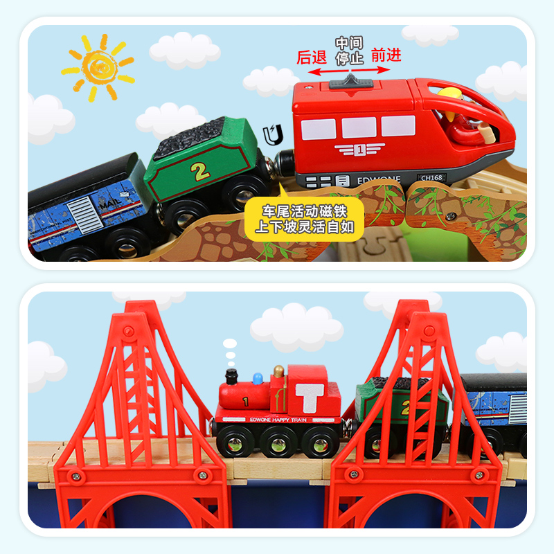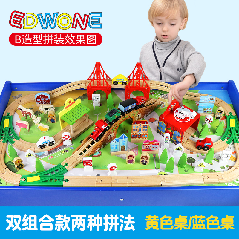 EDWONE100P Three-bridge rail train combination Beech rail train toy game table