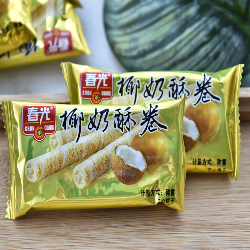 Spring Light Coconut Milk Crisp Rolls 158g * 3 boxes Hainan special Coconut Milk Sandwich Rolls Coconut's Coconut Butter biscuits Crisp Egg Rolls Refreshments