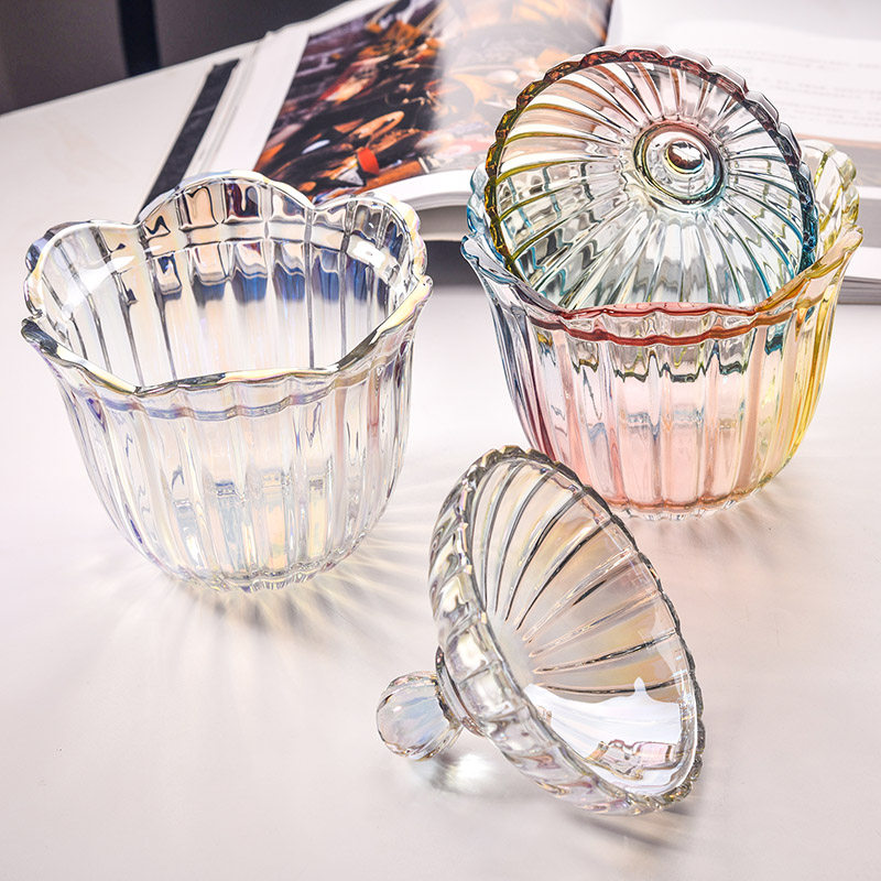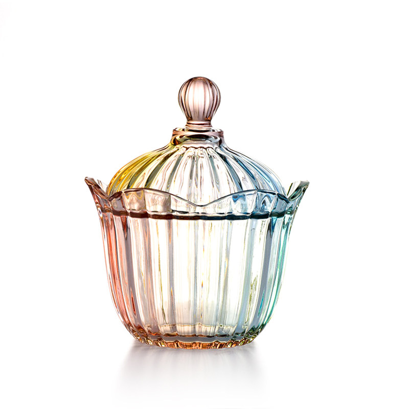 Nordic style glass large flower striped colored storage with lid jar Candy Jar Fire Pot shop Self-sauce Sauce Bowl