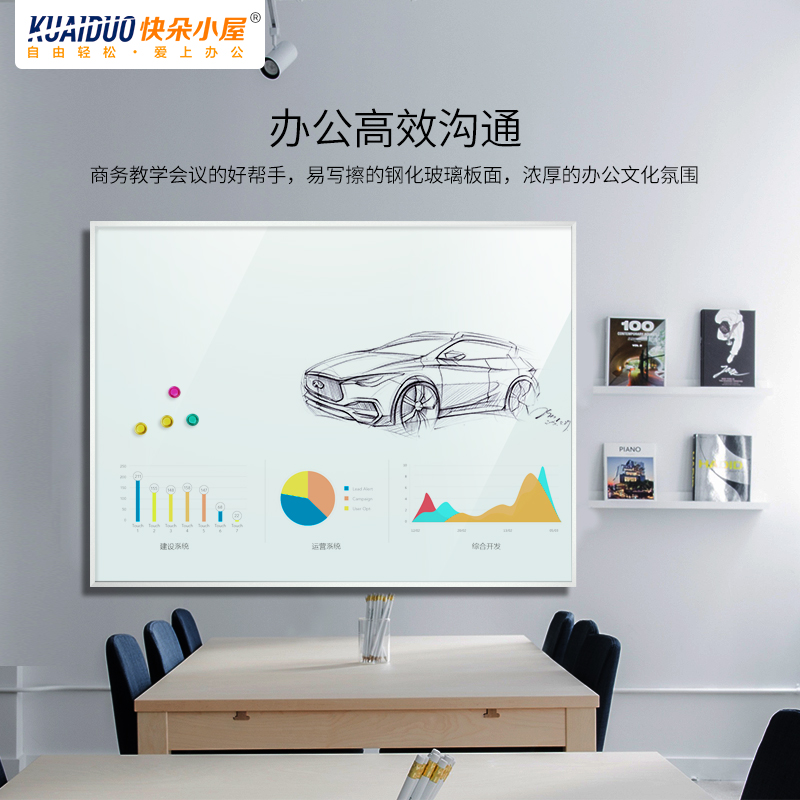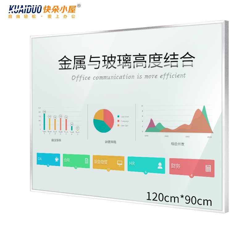 Fast Duo Lodge Tempered Glass Whiteboard Office Wall-mounted Whiteboard 120 * 90cm Magnetic with frame blackboard
