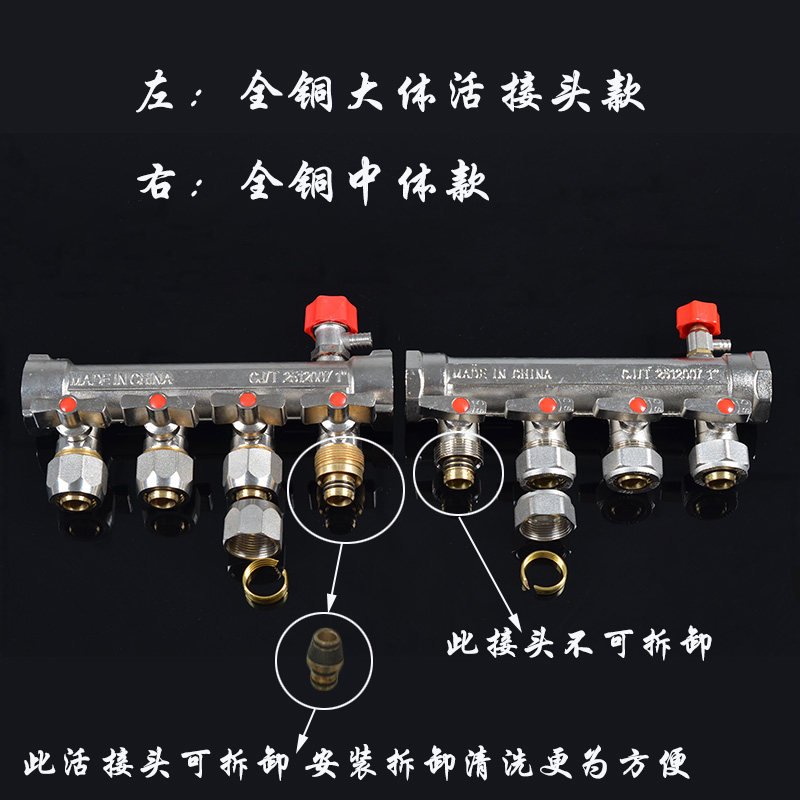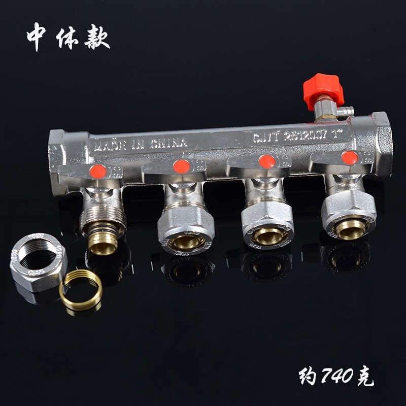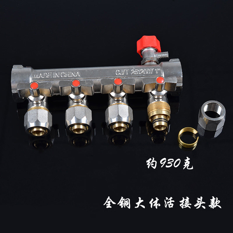 Geothermal floor heating water distributor full copper heating water distributor 1 inch DN25ppr filter sleeve valve water inlet valve backwater valve copper