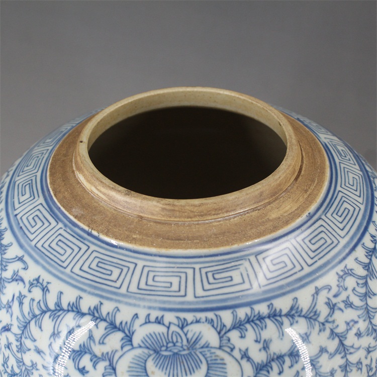 Qing blue and white peony wearing branches Lotus pattern happy word pot antique antique Jingdezhen hand-painted antique porcelain ornaments collection