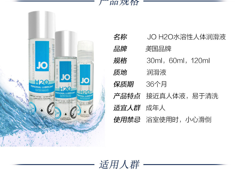 US JO Water Soluble Human Lubricant H2O Lubricant Premium Sexy Lubricant Adult Moisturizer