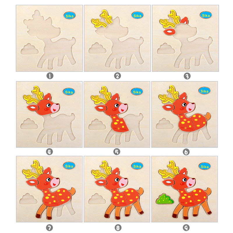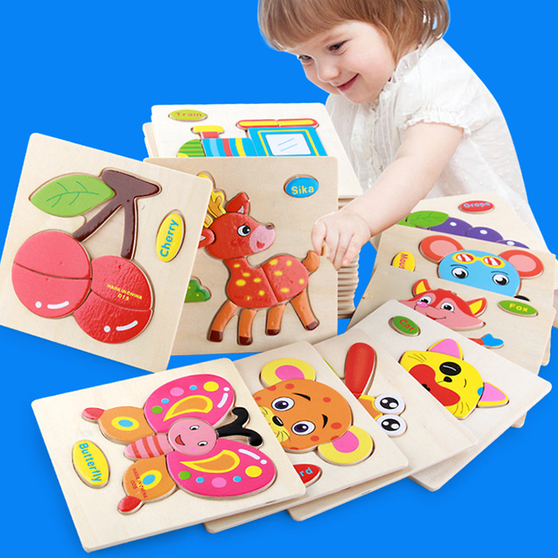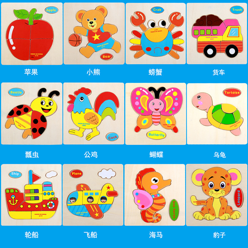 Wooden new 2-year 4 old 4-year-3 3-year-old puzzle children's toy cartoon stereo puzzle animal transport wood