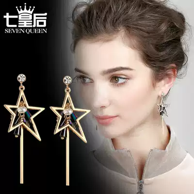Temperament long version of five-corner Star earrings Korean personality Joker Hong Kong wind earrings Net red earrings girl ins earrings