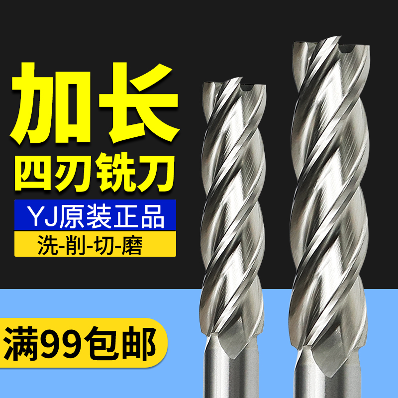 YJ lengthened four-edged white steel upright milling cutter special length M2AI with aluminum high speed mesh plus hard all-grinding over center 3-25mm