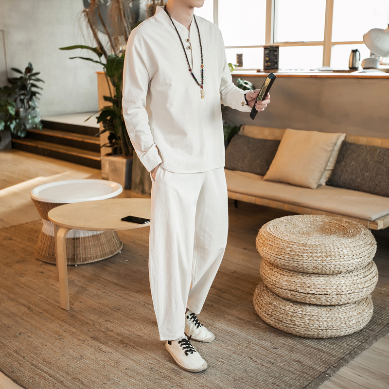 Spring linen men's clothing Chinese style Tang clothing Men's improved Hanfu two-piece set Chinese lay clothes Men's cotton and linen suit