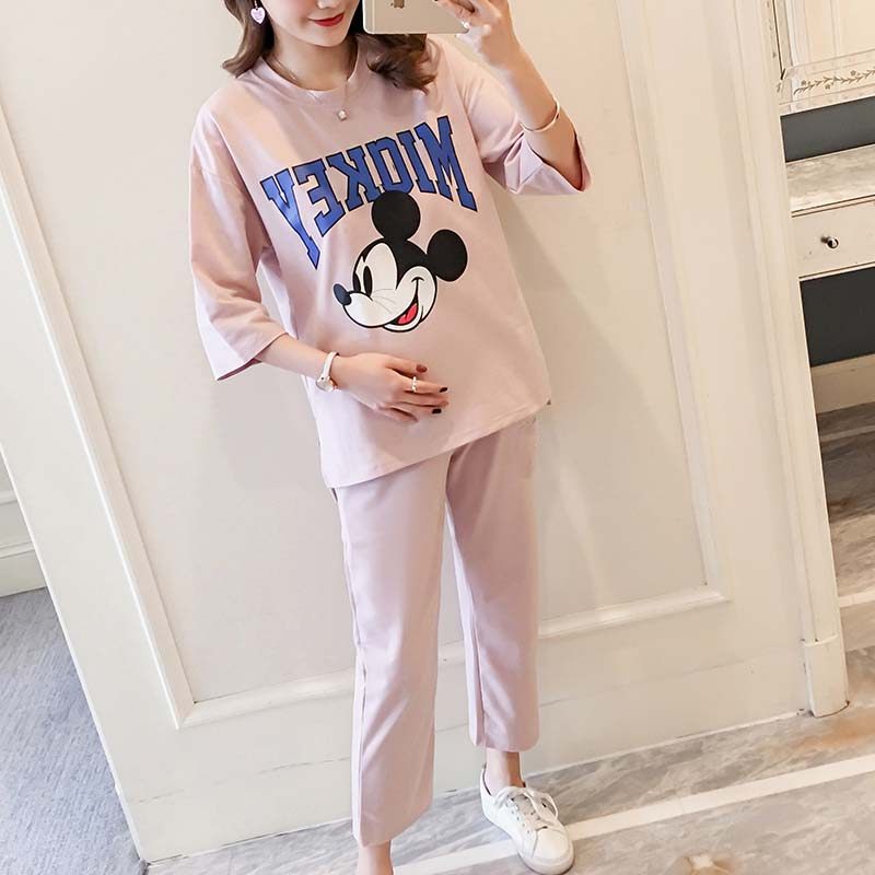 Pregnant Woman Suit Spring Clothing Fashion style Two sets Pregnancy Woman Dress Summer Loaded Pure Cotton 70% Sleeves T-Shirt Large Size Casual Pants