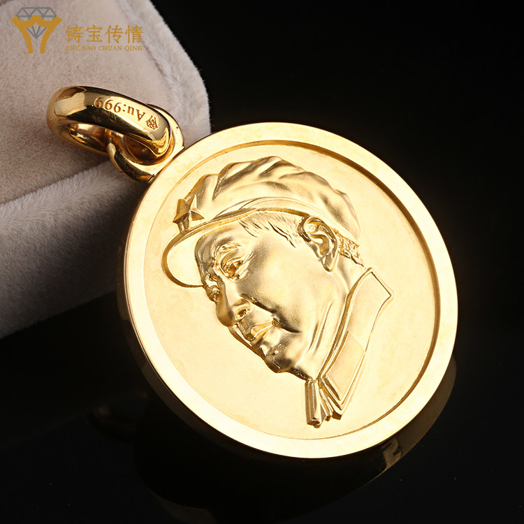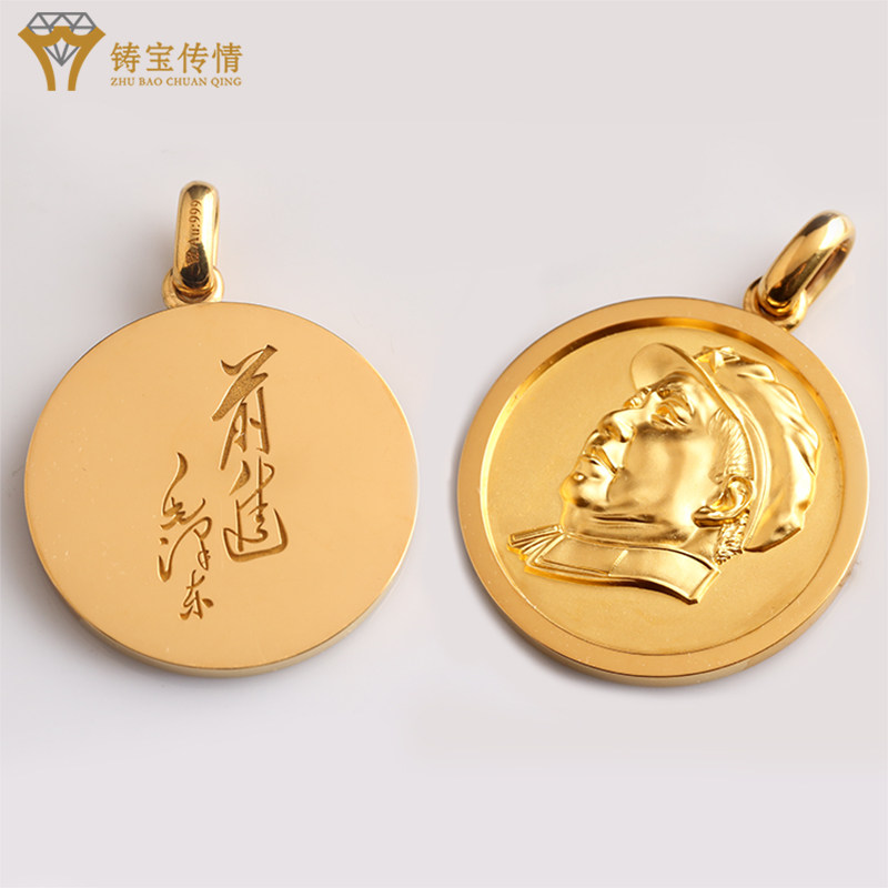 Jing Bao Chan 999 Pot Gold Chairman Head Pendant Commemorative 24k Gold Portrait Necklace Pendant Gold Customized