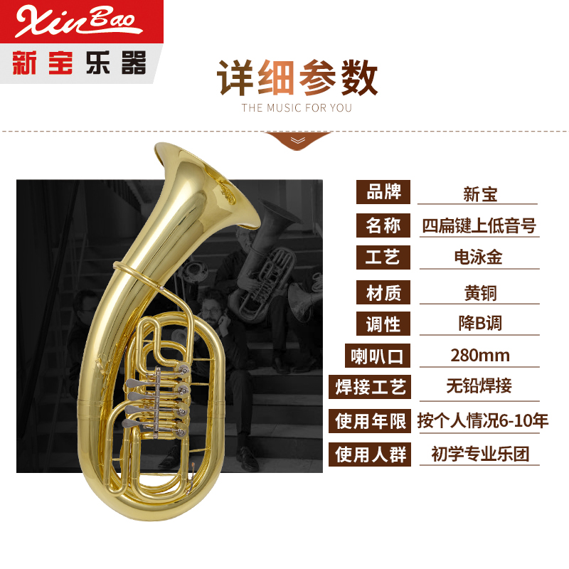 Xinbao upper bass instrument flat four keys Small horn flat key Yunfulai brass large brass EP1101