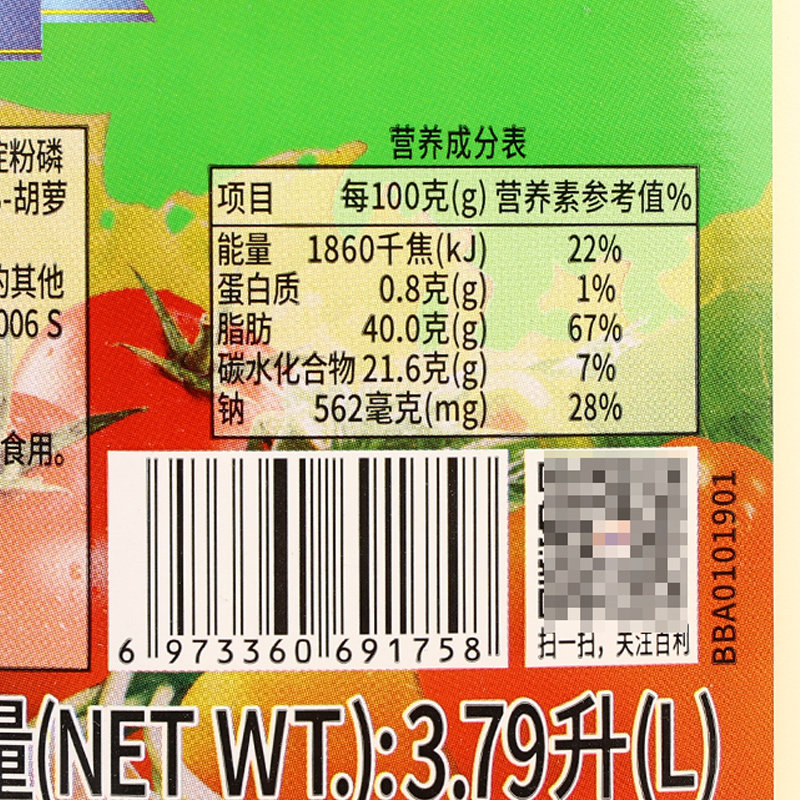 The product outer packaging product information such as Xanthan Gum Sorbic Potassium Dehydroacetic Acid Sodium Cane, Sodium Beta-Carotene, etc.