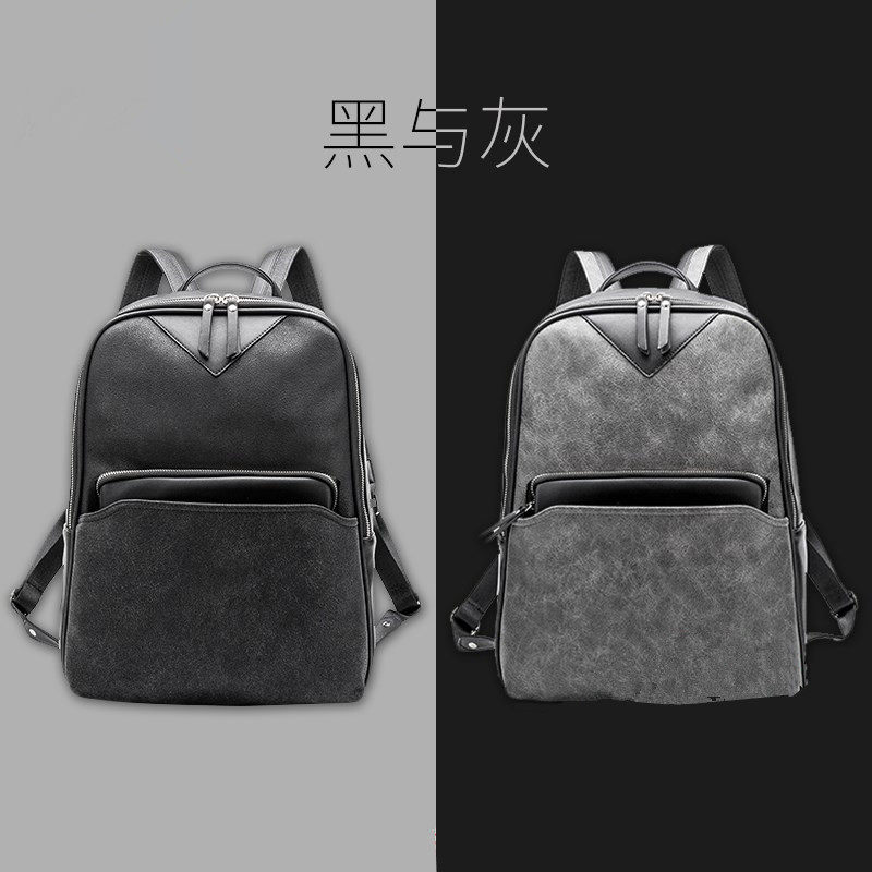 European Station men's double shoulder bag Han version genuine leather fashion Shoulder Bag bag Bag Girl Casual Business Travel Bag