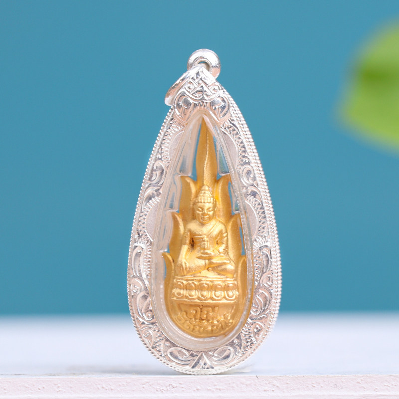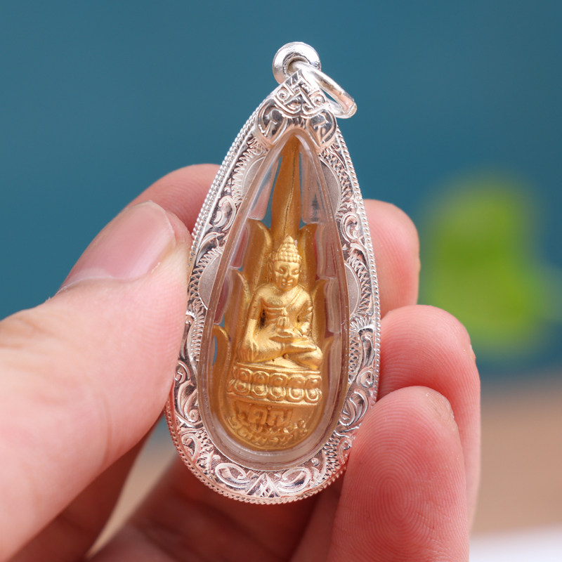 Thai Buddhist dragon Boron Kun 2548 flame Pharmacist Buddha pure silver shell Old brand male and female necklace pendant with identification card-Taobao