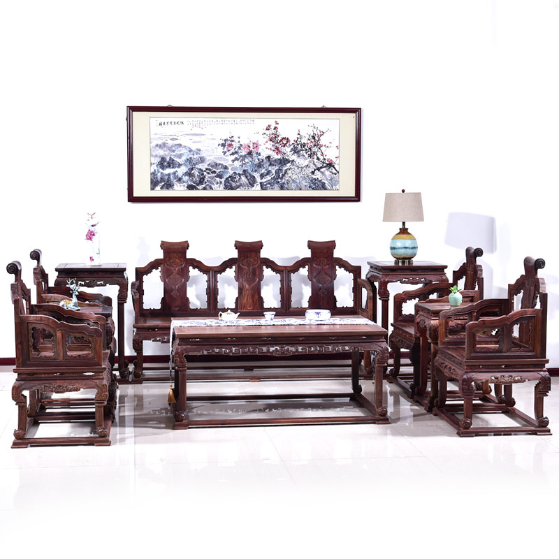 Mahogany furniture living room Chinese-style solid wood sofa combination big red rosewood antique small apartment sofa set treasure seat