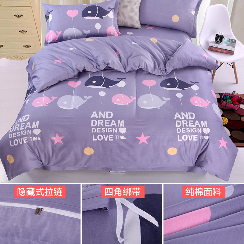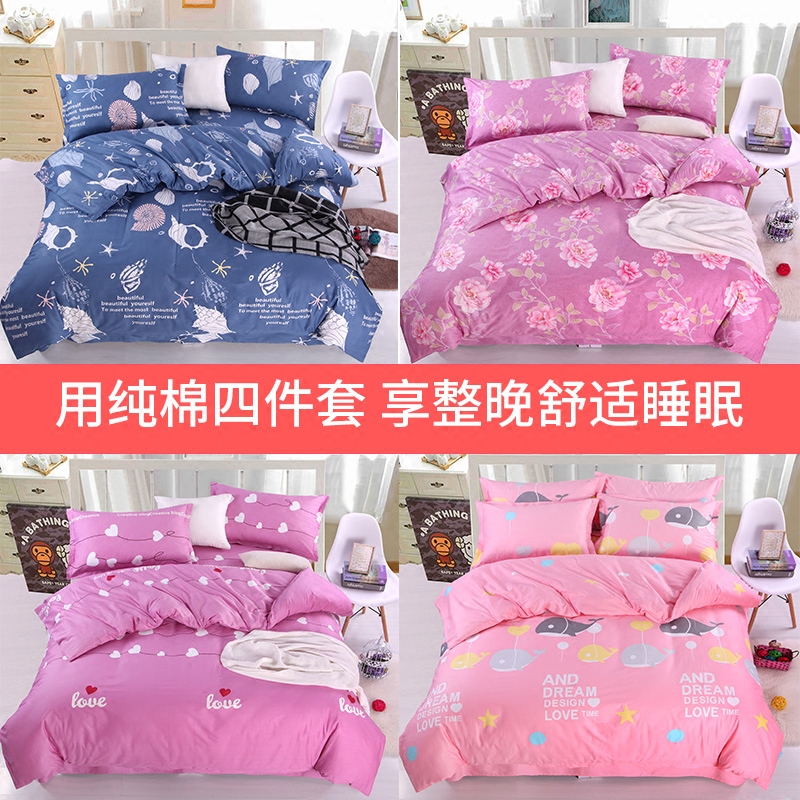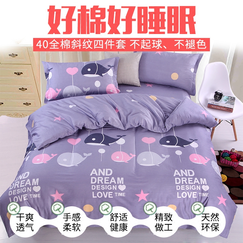 Cotton twill four-piece adult cotton spring and autumn quilt cover bed sheet double 1 8 m bedding kit