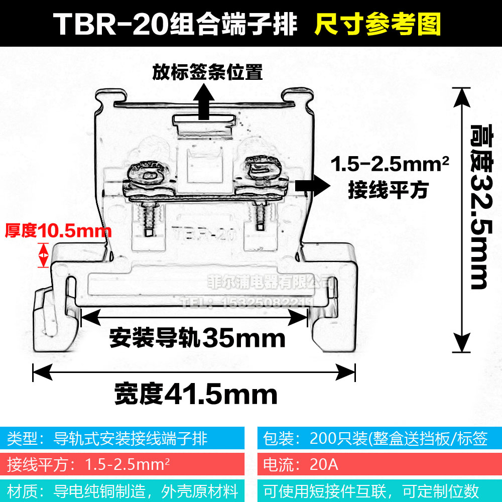 High quality pure copper parts TBR-20 rail modular terminal block TBR20A 2 5MM non-slip wire