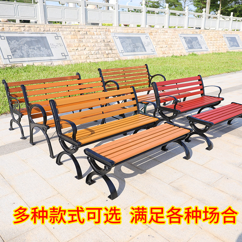 Park Chair Outdoor bench Solid wooden casual chair square chair block anti-corrosion wooden courtyard backcast iron chair