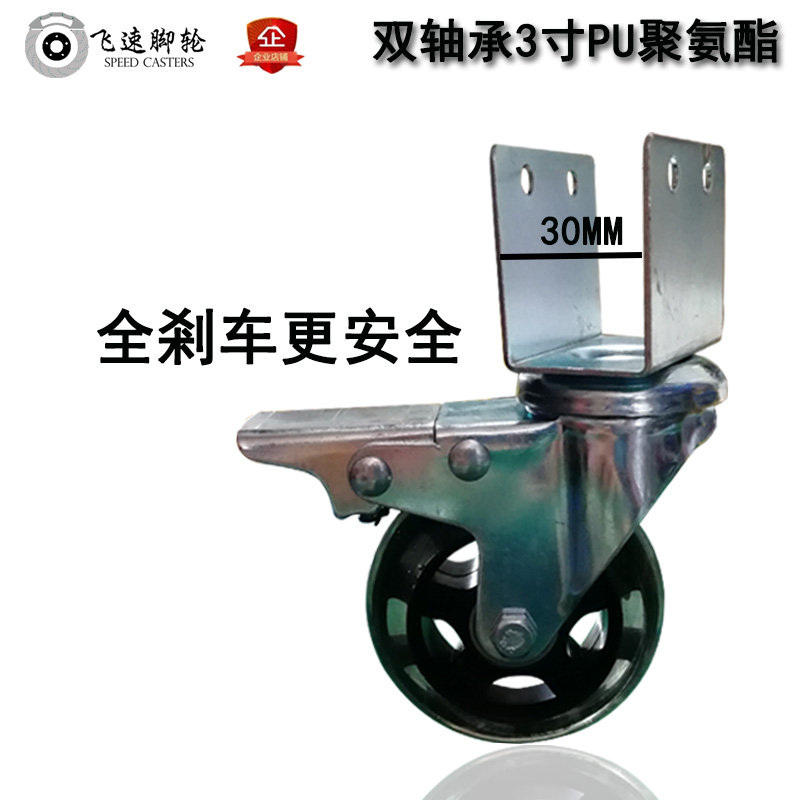 Furniture casters 3 inch double bearing crib wheel splint 30MM universal wheel polyurethane table and chair reel