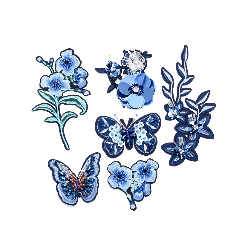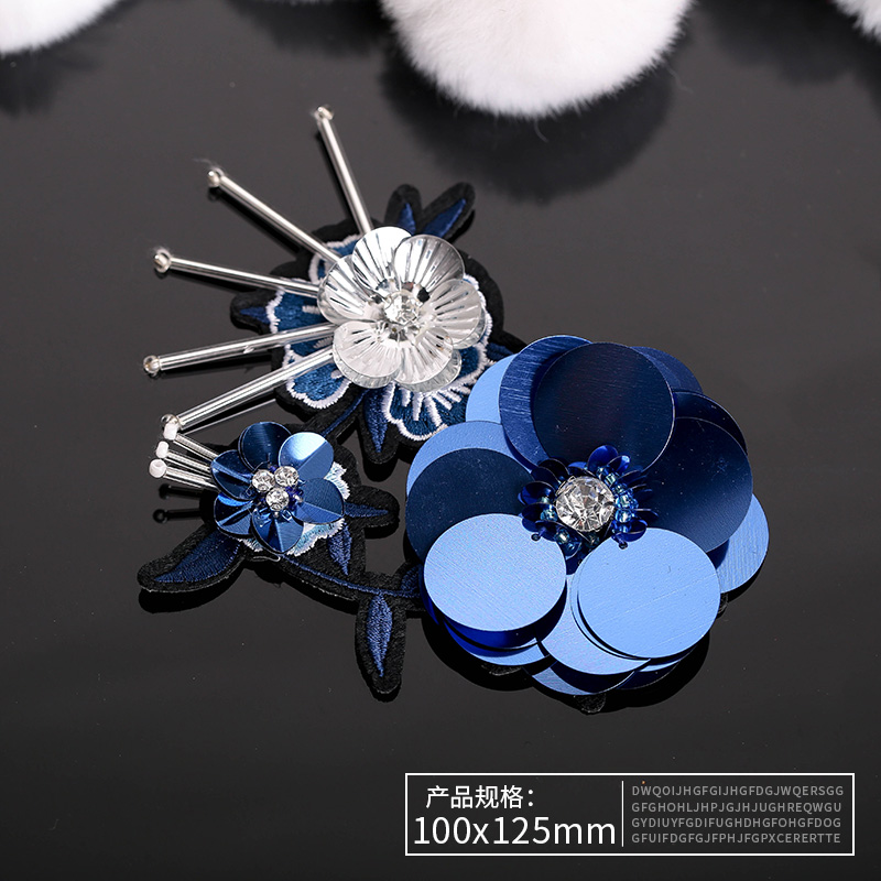 Beaded blue embroidery flower sweater sticker Sequin rhinestone cloth sticker Hole sticker Chapter flower dress decoration patch hole cloth sticker