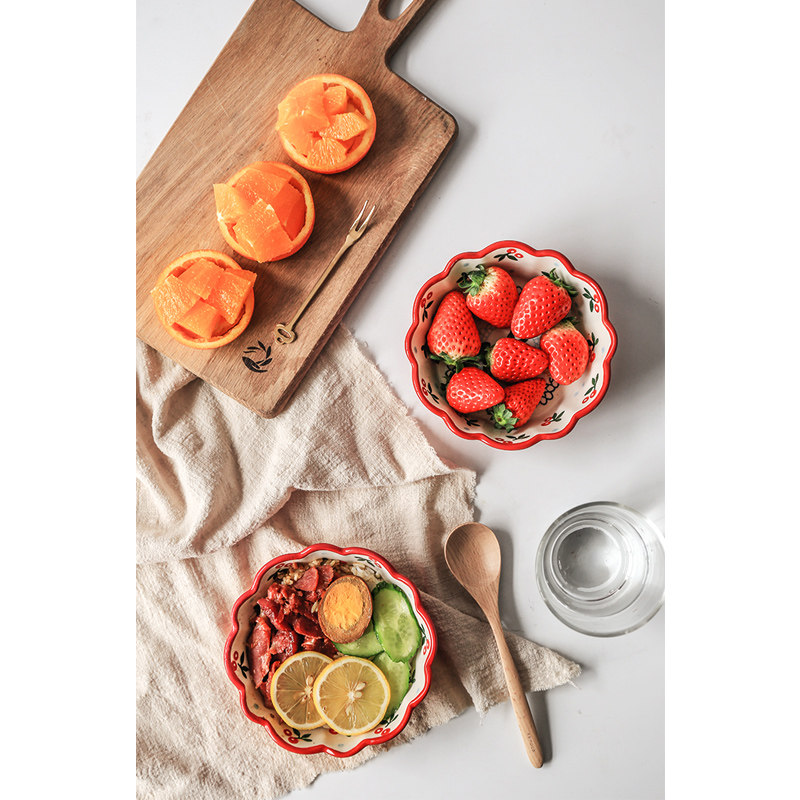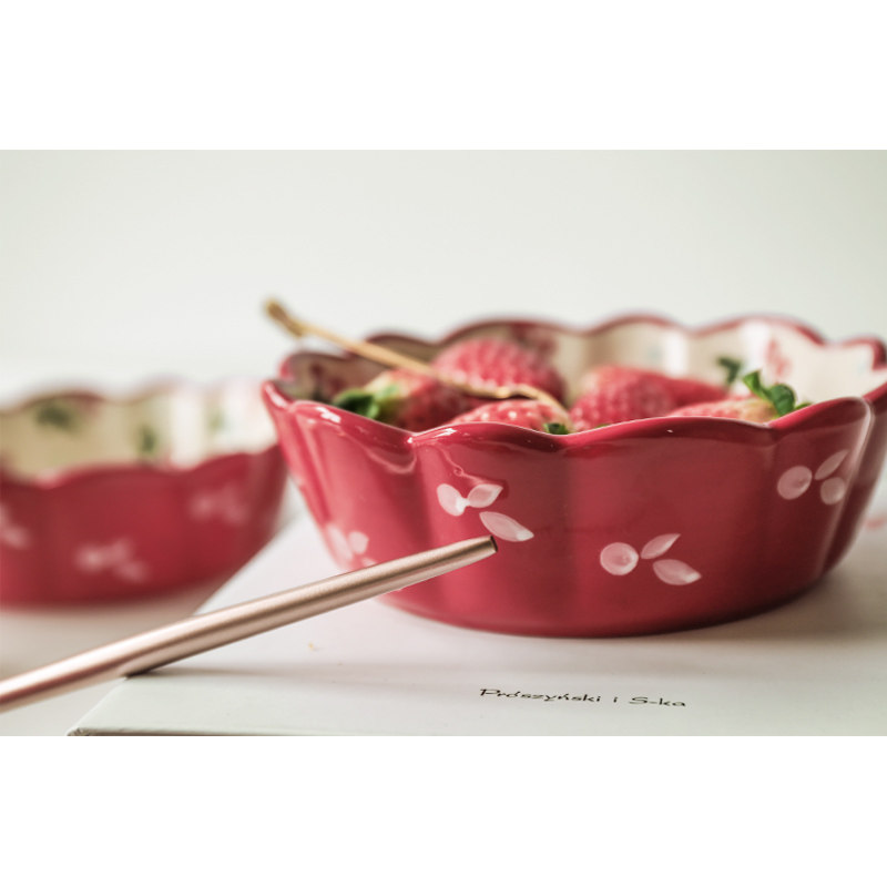 Ceramic tableware on wood Cherry Bowl single creative fruit salad bowl dessert bowl cute breakfast rice bowl home