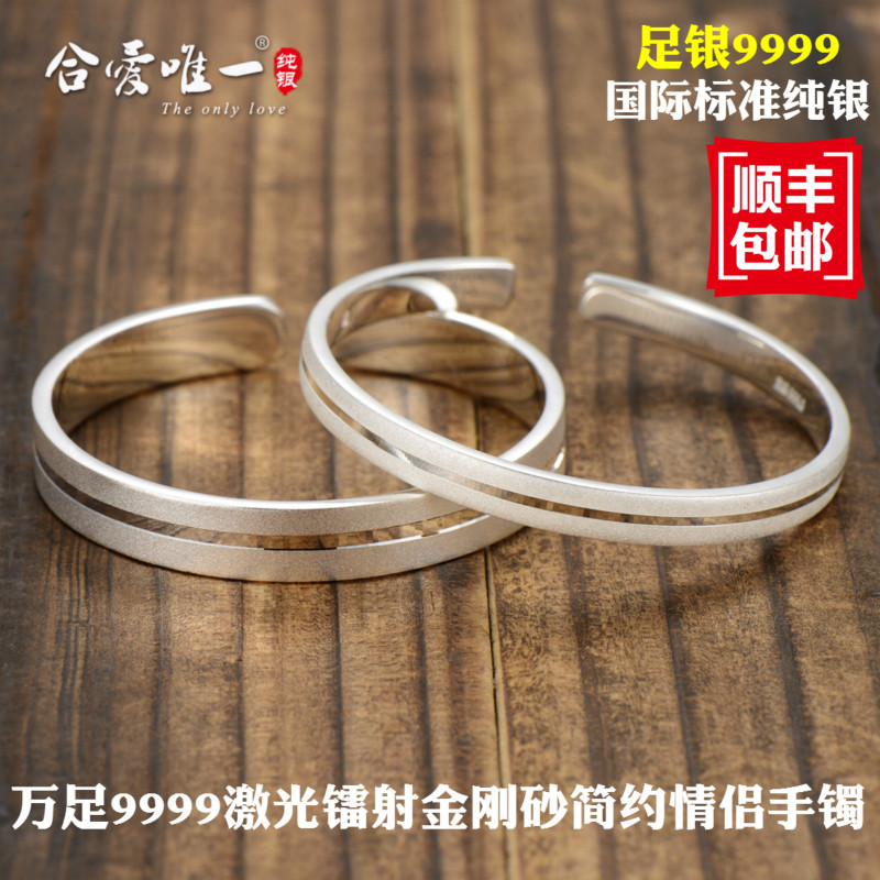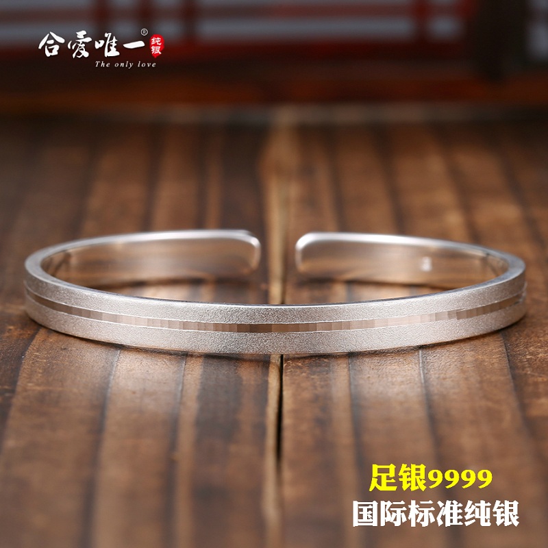 Pure Silver 9999 Fashion Frosted Laser Bracelet (35 gr inside diameter 61mm) (Guys with glossy light Qi mouth Stars Rose bottom French "I Love You" silver bracelet (25 gr ten thousand foot 9