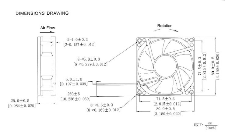 DC 5V 12V 24V 48V 8CM 80X80X25 8cm power supply brushless cooling fan specifications